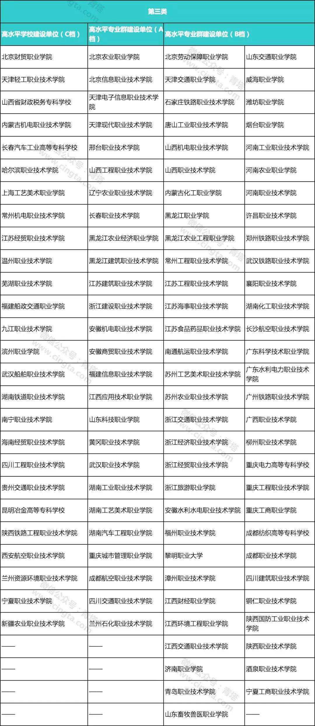 中國特色高水平高職學校和專業建設計劃擬建單位公示名單: